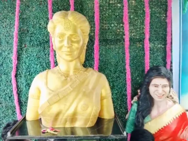 Article Description: साउथ एक्ट्रेस Samantha Ruth Prabhu के 38वें जन्मदिन पर एक फैन ने उनके लिए मंदिर बनवाया। मूर्ति का वीडियो सोशल मीडिया पर वायरल हो रहा है।